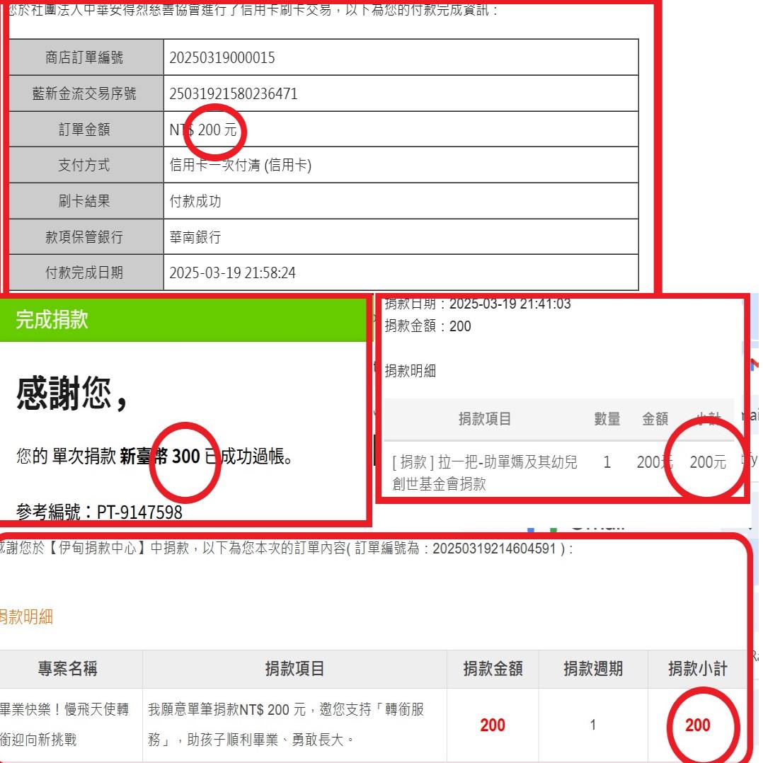 2025.03.19 - 鎮瀾兒童家園,因無法線上捐款,故暫時保留款項。累計款項為400元 (本次新增300)元。
